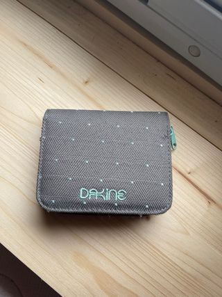 Cartera de la marca Dakine, ideal para mujer. Perfecto estado, pequeña y cómoda. - Diseño con estampado geométrico. - Pequeños detalles en color menta. - Cierre de cremallera.