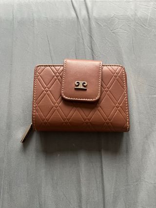 Cartera de mujer compacta, pequeña y elegante. Diseñada para llevar lo esencial de forma organizada. Imitación piel. - Acabado texturizado. - Detalle metálico con logo. Pequeños desperfectos en última foto