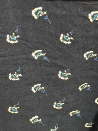 Pantalones cortos con un diseño original. - Estampado de pequeñas flores blancas sobre fondo oscuro. - Cintura elástica para mayor comodidad. - 2 bolsillos grandes delanteros. - 2 bolsillos traseros (algo mayor que una cartera masculina). Esta en perfectas condiciones si no fuese pq el color se ha desgastado bastante x el uso.