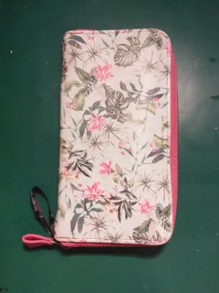 Cartera monedero para mujer. - Diseño compacto y práctico. - Cierre de cremallera. Con diferentes compartimentos. Muy completa, con múltiples tarjeteros. Aunque está sin estrenar tiene un pequeño desgaste en el interior. Se ve en las fotos. Por fuera está perfecto.