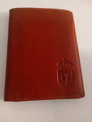 Cartera de piel sintética en color marrón. - Diseño plegable. - Detalle de logo en relieve. - Insignia tricolor en la solapa. No envio. Entrego en mano en Humanes de Madrid.
