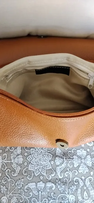 Elegante bolso de piel en tono marrón. Un accesorio versátil y con estilo. - Material: Piel genuina. - Diseño: Asa bandolera ajustable. - Detalle: Cierre metálico en el asa.