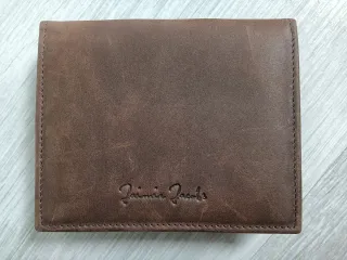 Cartera de piel para caballero en piel marrón. Marca Jaime Jacobs. Color marrón oscuro. Tiene monedero y compartimentos para tarjetas. Medidas (cerrada): aprox. 10 x 8'5 x 1'5 cm. Totalmente nueva. Viene en su caja original. Ideal para regalo.