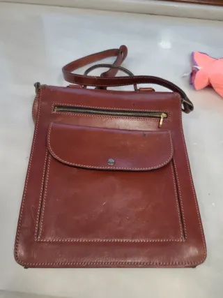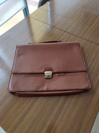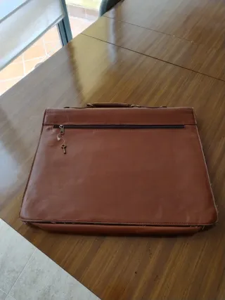 Elegante cartera portadocumentos de cuero. - Diseño clásico y funcional. - Cierre metálico de seguridad. - Correa ajustable para llevar al hombro. - 100% Piel Bovina - Forro interior nuevo. - Nunca se ha usado pero tiene algunos roces en el exterior.