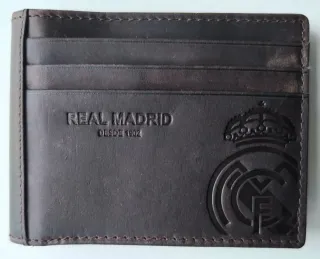 Elegante cartera de piel con el escudo y el nombre del Real Madrid. - Material: 100% Piel. - Color: Marrón. - Diseño: Real Madrid. Producto oficial.