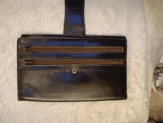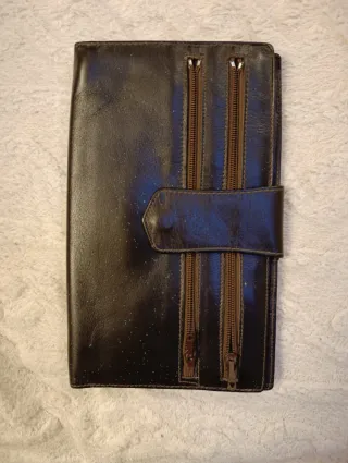 Elegante cartera de piel con cierre de botón. - Material: Piel genuina. - Color: Negro. - Marca: DISPEL. - Diseño clásico y funcional. Tiene dos cremalleras para guardar monedas o billetes , además de múltiples compartimientos para tarjetas, guardar fotos, tickets o papeles. Muy práctica y elegante