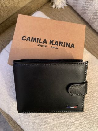 Cartera de piel para hombre con un diseño elegante y moderno. Incluye una funda protectora. - Diseño con detalles imitación Tommy Hilfiger. - Fabricada en piel legítima.