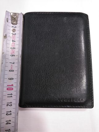 Elegante cartera de piel auténtica. - Material: Piel genuina. - Cierre de seguridad metálico.
