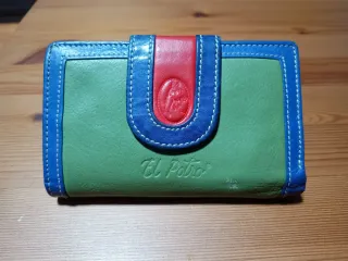 Cartera de piel de la marca El Potro con un diseño colorido y original. Bastante usada pero en buen estado general, sólo tiene una pequeña marca (ver última foto) Medida: 14,5x9,5 cm 📦 Hago envíos.