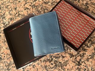 Cartera de caballero de la marca Petusco. Presenta un diseño texturizado y elegante. - Material: Piel. - Color: Azul. Incluida la caja. Todo en perfecto estado, sin usar.