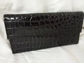 Elegante cartera de mujer con un diseño texturizado que imita la piel de cocodrilo. - Acabado brillante. - Cierre de solapa.