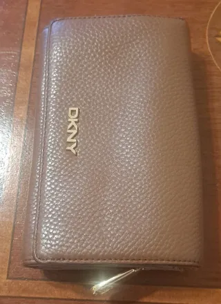 Elegante cartera de piel DKNY. Muchos compartimentos. Perfecto estado - Material: Piel. - Color: Marrón.