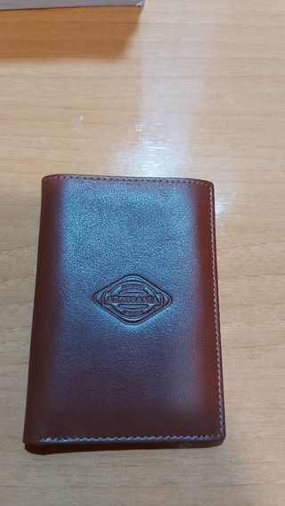 Elegante cartera de piel para hombre. Un accesorio clásico y funcional. - Material: Piel genuina. - Diseño compacto y práctico. - Detalle de costuras reforzadas. - Logo de la marca grabado en relieve.