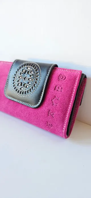 ¿Buscas una cartera que sea tan práctica como elegante? Este billetero de mujer en piel grabada marrón es la solución definitiva para mantener tu orden personal. -Confeccionado en piel genuina con grabado de alta calidad que evita marcas y arañazos. -Dispone de amplias secciones para billetes, un generoso tarjetero y un monedero con cierre seguro para evitar pérdidas. -En el Feng Shui, el marrón simboliza la estabilidad y la seguridad financiera, ayudándote a gestionar tu dinero con equilibrio.