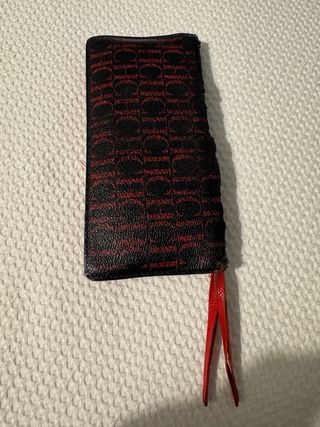 Cartera completamente nueva, sin estrenar. Es de un tejido suave similar a la piel de melocotón. Lleva tres departamentos centrales uno con cremallera. Otra parte es para guardar tarjetas, caben hasta diez. Medidas 20x11