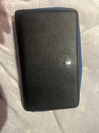 Elegante tarjetero de piel de la marca Montblanc. - Capacidad para 4 tarjetas y tarjetero adicional - Diseño compacto y sofisticado. -Tamaño 10 cm de alto x 8 cm de ancho