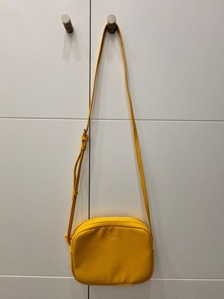 Bolso amarillo efecto piel marca Pull&Bear, con cierre de cremallera en el mismo colores Solo un uso. Es pequeño. Para móvil, llames y cartera.