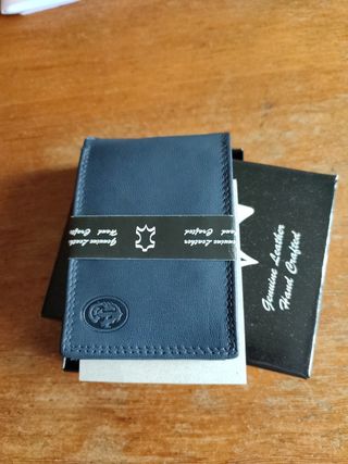 Cartera nueva de piel unisex pequeña con medidas 9,5cm largoy 7cm alto, ideal para bolsos pequeños y bolsillo. Nunca usada, está en su caja.