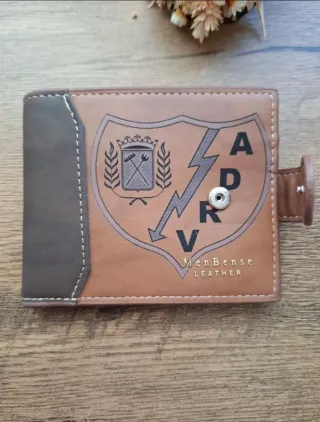 Cartera con el escudo del Real Madrid. Cartera de piel y ante con medidas 12x10cm. Suavidad y agradable al tacto por fuera. Acabados bonitos de piel por dentro. Espacios para muchas tarjetas, el monedero se cierra con cremallera. Hay dos apartados para los billetes, el exterior con cremallera. - Diseño bicolor en marrón y negro. - Cierre de botón a presión.