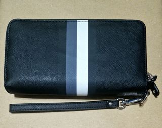 Elegante cartera de piel con un diseño texturizado y el logo de la marca. - Cierre de cremallera completo. - Compartimentos interiores para tarjetas y efectivo. - Acabado en piel de alta calidad.