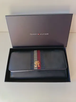 Elegante cartera de la marca Tommy Hilfiger. - Diseño clásico y funcional. - Acabado en piel. - Detalle metálico con el logo de la marca. Tengo la caja original, ni un día de uso ya que ya tenía otra y me regalaron esta.