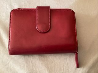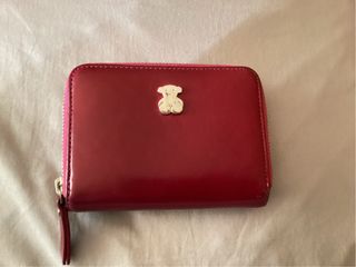 Cartera de piel Tous en color rojo vino. - Diseño con cremallera,departamento para tarjetas y billetera asi como cremallera para poner monedas. - Detalle de oso Tous,tiene poco uso pero si amplia la foto,se puede ver en el logo del oso 2 pequeños roces.