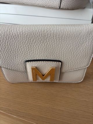 Elegante bolso de mano con un diseño moderno y sofisticado. - Acabado en piel texturizada. - Detalle frontal con logo metálico dorado. - Cierre de solapa.