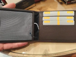 Elegante cartera de caballero de piel, sin estrenar. - Diseño clásico y funcional. - Compartimentos interiores para tarjetas y monedas. - Acabado texturizado.