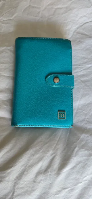 Cartera de Salvador Bachiller de 16x10 cm color Turquesa. Compacta por fuera, espaciosa por dentro. Esta cartera Salvador Bachiller ofrece múltiples compartimentos para tarjetas, documentos, billetes y monedas, además de espacio para un bolígrafo. Cierre con botón a presión. Detalle metálico don logo Salvador Bachiller en la parte frontal. Elegancia y funcionalidad en un diseño que te acompaña a todas partes. En la parte interior de la correa de cierre está gastada la piel.