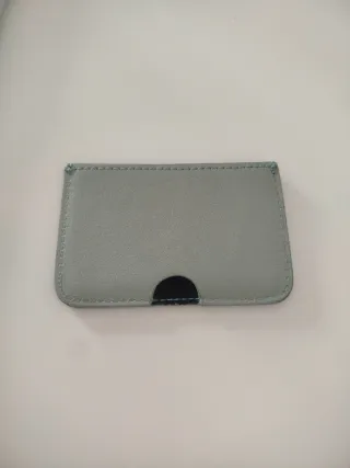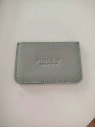 Tarjetero de la marca Mimique, fabricado en España. Su diseño es elegante y práctico. - Color azul claro. - Material de piel. - Costuras reforzadas.