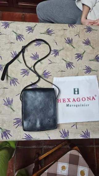 Elegante bandolera de piel auténtica HEXAGONA, completamente nueva y sin uso. ✨ Marca francesa de marroquinería ✨ Piel de alta calidad ✨ Color negro, diseño elegante y atemporal ✨ Correa larga ajustable ✨ Incluye funda original de la marca Ideal para uso diario o para ocasiones más formales. Tamaño perfecto para llevar móvil, cartera, llaves y básicos cómodamente. Está totalmente nueva, sin marcas ni desgaste.
