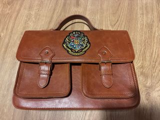 Bolso estilo cartera con el escudo de Harry Potter. - Diseño inspirado en el universo de Harry Potter. - Acabado en piel sintética marrón. - Compartimentos frontales con hebillas. - Bolso interior con cremallera. NUEVO. Medidas- 30,5x24x9 Posibilidad de entrega en mano en Salamanca