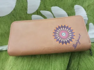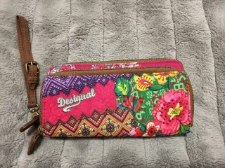 Cartera monedero de la marca Desigual con un diseño vibrante y detallado. Nuevs sin usar - Estampado mandala y floral. - Cierre de cremallera.