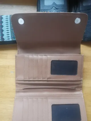 Conjunto de tres monederos o carteras.Uno simulando a la marca Desigual apenas uso, impecable. Los otros dos con un pelín más de uso pero impecables. Lote de los 3. 10 eur - Diseño con cremallera y detalle de borla. - Compartimentos interiores para tarjetas. - Cierre de botón a presión.