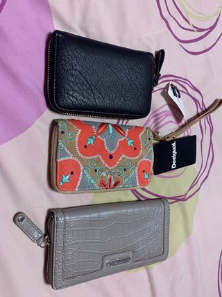 1. Cartera mango gris grande 10€ 2. Cartera Desigual mediana 15€ 3. Cartera C&A negra mediana 10€ VENDIDA Todas NUEVAS y con etiqueta salvo la de Mango que venia sin ella. Ideal regalos!