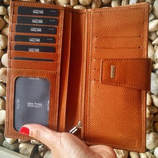 Cartera-monedero-billetero cuero de mujer con gran capacidad. Variedad de ranuras para tarjetas y otros documentos (unas 20 ranuras). Transparente para fotos o DNI. Un bolsillo con cremallera. Un compartimento con botón que puede ser utilizado para algunos móviles de hasta unos 17 cm. u otros usos. El cierre de la cartera tiene dos botones para evitar que no se pueda cerrar en caso de tenerla muy llena. Viene con caja para regalo. Medidas cerrada: unos 19x10cm. Medidas abierta: unos 19x22cm. Mira mis otros artículos para ahorrar en gastos de envío.