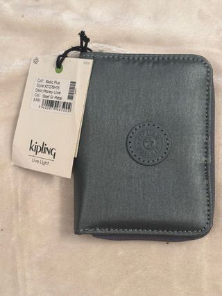 Cartera de la marca Kipling. Es color gris metálico. - Medidas en las fotos. - Sin estrenar . - Cierre de cremallera.