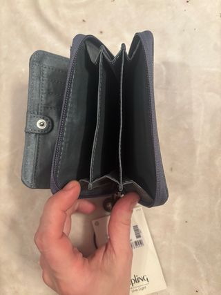 Cartera monedero azul marino marca Kipling, sin estrenar con etiquetas, bolsillo interno con cremallera, precio original 50€ Medidas 19x11cm