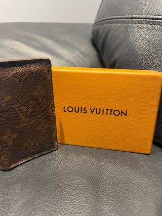 Cartera Louis Vuitton Monogram original, bifold clásica, descatalogada, en muy buen estado general. Exterior de canvas Monogram muy bien conservado. Interior en piel con signos leves de uso acordes a la edad, visibles en las fotos, incluyendo una pequeña marca interior atenuada. No presenta roturas ni daños estructurales. Cartera totalmente funcional, con buena estructura. Se entrega con: • Caja Louis Vuitton auténtica (modelo actual, en muy buen estado) • Dust bag original Louis Vuitton • Documentación Louis Vuitton adicional Incluye iniciales grabadas, propias de artículos personalizados de la marca. Precio original: 420€