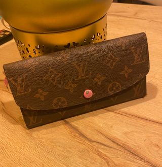 Cartera Louis Vuitton Emilie Monogram original en lona canvas y forro interior en tono rosado. Con botón dorado, múltiples ranuras para tarjetas y bolsillo central con cremallera. Medidas: 19 x 10 x 3 cm. En excelente estado, sin marcas ni desgaste visible. Modelo elegante y funcional, ideal para quienes buscan una cartera Louis Vuitton auténtica de segunda mano con estilo y calidad. Se entrega con caja. Entrega en Barcelona o envío. Ref. 0525