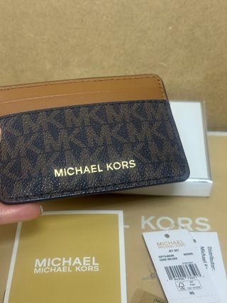 Tarjetero con el distintivo logo de Michael Kors en color marrón. - Diseño con monograma. - Acabado en piel sintética. - Compartimentos para tarjetas. Nuevo a estrenar con su caja y etiquetas