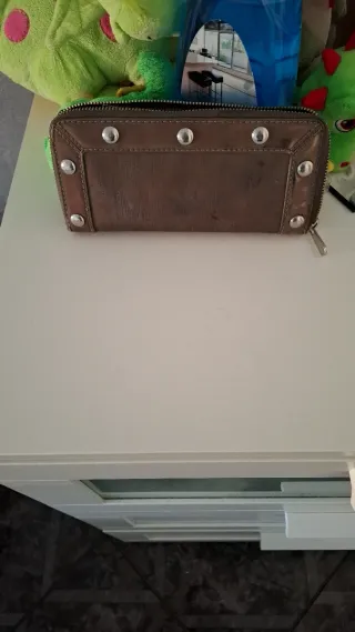 Elegante cartera con tachuelas metálicas. - Diseño con tachuelas alrededor. - Placa metálica con el logo de la marca.