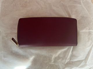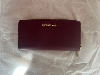 Cartera de la marca Michael Kors en color burdeos. - Diseño elegante con el logo MK. - Cierre de cremallera. - Lleva espacio para billetes y tarjetas. Y un compartimento que se cierra con cremallera para monedas.