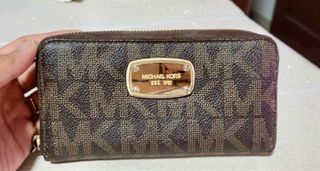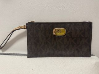 Elegante cartera Michael Kors en color marrón. - Diseño con cremallera completa. - Incluye correa de muñeca. - Logo metálico de la marca en la parte frontal.