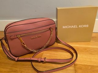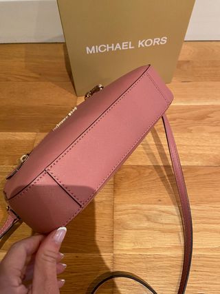 Bolso Michael Kors tipo bandolera en color rosa maquillaje, muy elegante y fácil de combinar. Está prácticamente nuevo y en perfecto estado. Es un bolso muy cómodo para el día a día gracias a su cinta regulable, que permite llevarlo a la altura que prefieras. Tiene varios compartimentos interiores y exteriores, ideales para mantener todo bien organizado (móvil, llaves, cartera, etc.). Además, incluye una cadenita decorativa que le da un toque muy bonito y sofisticado, aunque también se puede quitar fácilmente si prefieres un estilo más sencillo.
