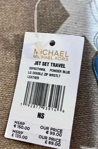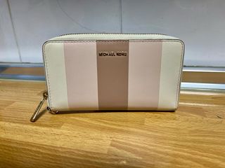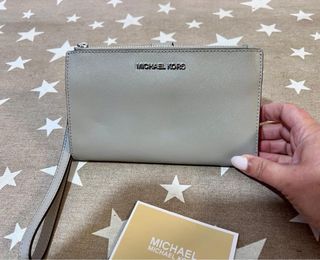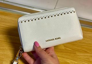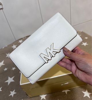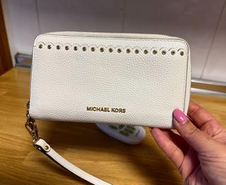 Monedero o cartera de la marca Michael Kors con un diseño estampado. - Color blanco y gris. - Incluye correa de mano. - bolso de mano - Nueva !!!