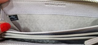 Cartera de mano MK ORIGINAL con número de referencia 34H3S8ED7E. Modelo Empire. 100%piel. Cierre mediante cremallera y parte trasera con espacio para tarjetas. Medidas: 19 cm largo x 11 cm alto. A estrenar, con etiqueta, Care Card, caja y bolsa de la tienda.