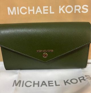 Elegante cartera de Michael Kors en un bonito tono verde. Perfecta para organizar tus esenciales. - Diseño con solapa. - Detalle metálico con el logo de la marca en oro. - Tarjetero y monedero.
