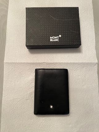 Cartera Montblanc de piel negra SIN ESTRENAR. Espacio para 8 tarjetas y billetero. Viene con todo su packaging original. Nunca se ha usado.
