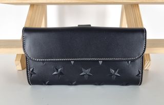 Cartera de piel genuina con un diseño de estrellas en relieve. Su textura es muy suave al tacto. - Material: Piel genuina. - Diseño: Estrellas en relieve. - Acabado: Muy suave. Material = Piel Genuina Medidas = Largo 18,5 cm Alto 10 cm Ancho 4 cm ✔️ La cartera se cierra con clip ✔️ 1 Compartimento para monedas con 2 compartimentos interiores + 1 compartimento con cremallera ✔️ 12 Compartimentos interiores para tarjetas + 1 compartimento transparente + 1 compartimento para billetes + 2 compartimentos ✔️ La piel genuina es de la más alta calidad y ofrece una sensación suave y flexible ✔️ Made in Spain-Ubrique